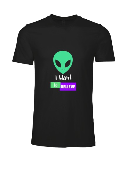 “For the seekers, the dreamers, and those who know we’re not alone. Wear your belief proudly with this iconic alien design.”